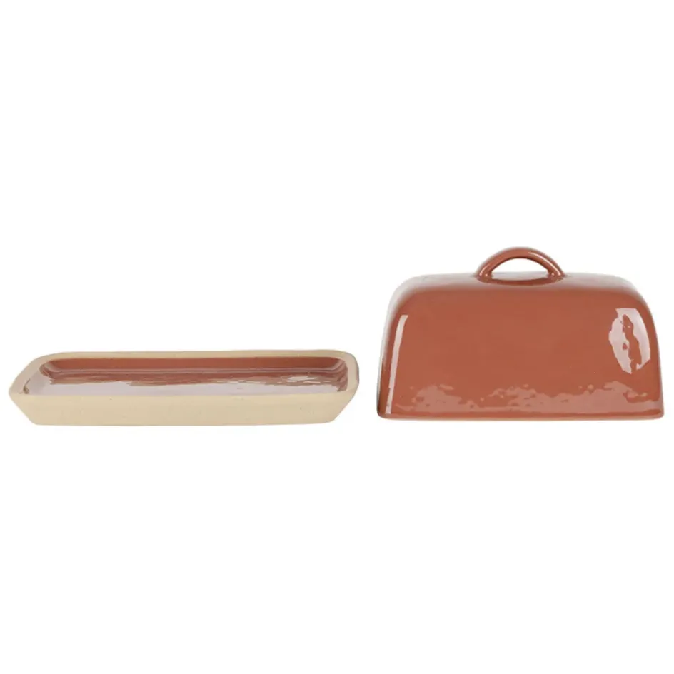 Transformez votre expérience culinaire avec ce magnifique beurrier en grès dans une teinte tomette captivante nommée Jade.