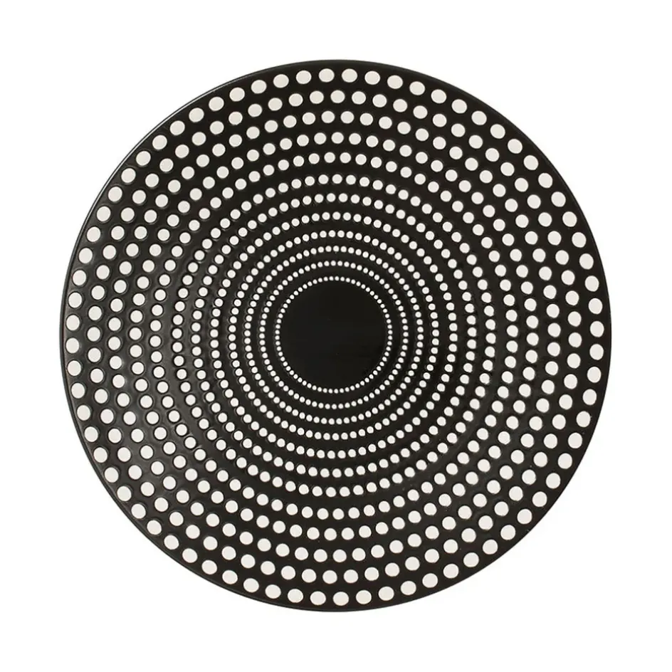 Avec son imprimé de pois blancs qui s’enroule en spirale sur un fond noir intense, cette assiette à dessert en grès ajoute du rythme et du contraste à vos présentations sucrées.