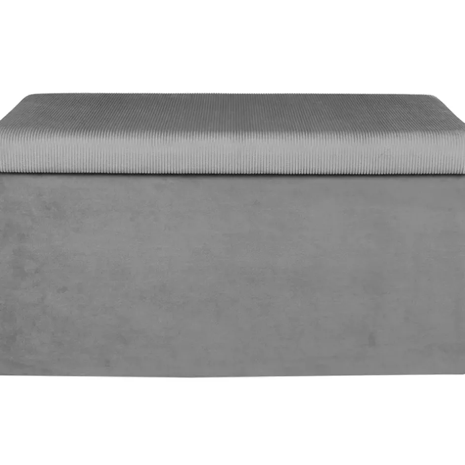 À la fois banc d’appoint et espace de rangement, ce coffre pliable Julia en velours côtelé gris coche toutes les cases !