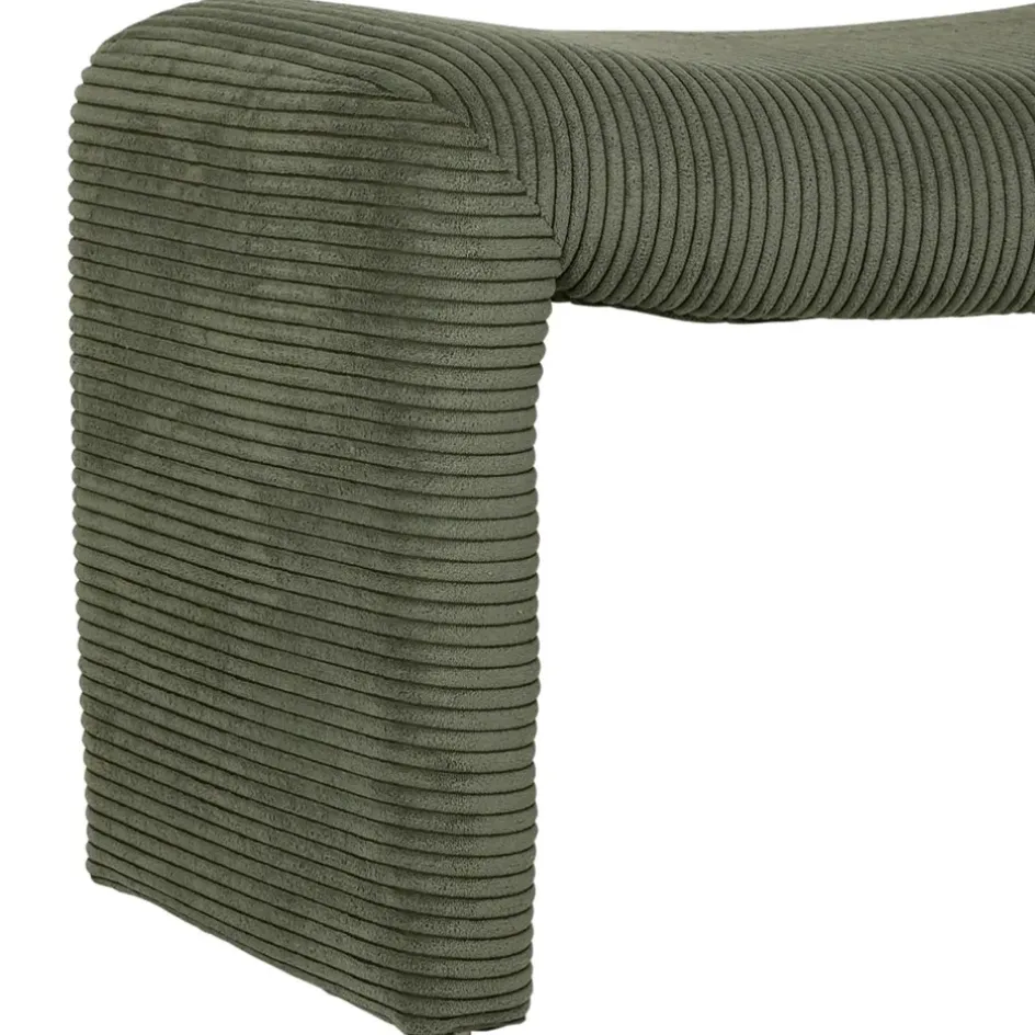Découvrez le banc en velours côtelé vert, une pièce de mobilier versatile qui apporte une touche de modernité à votre intérieur.