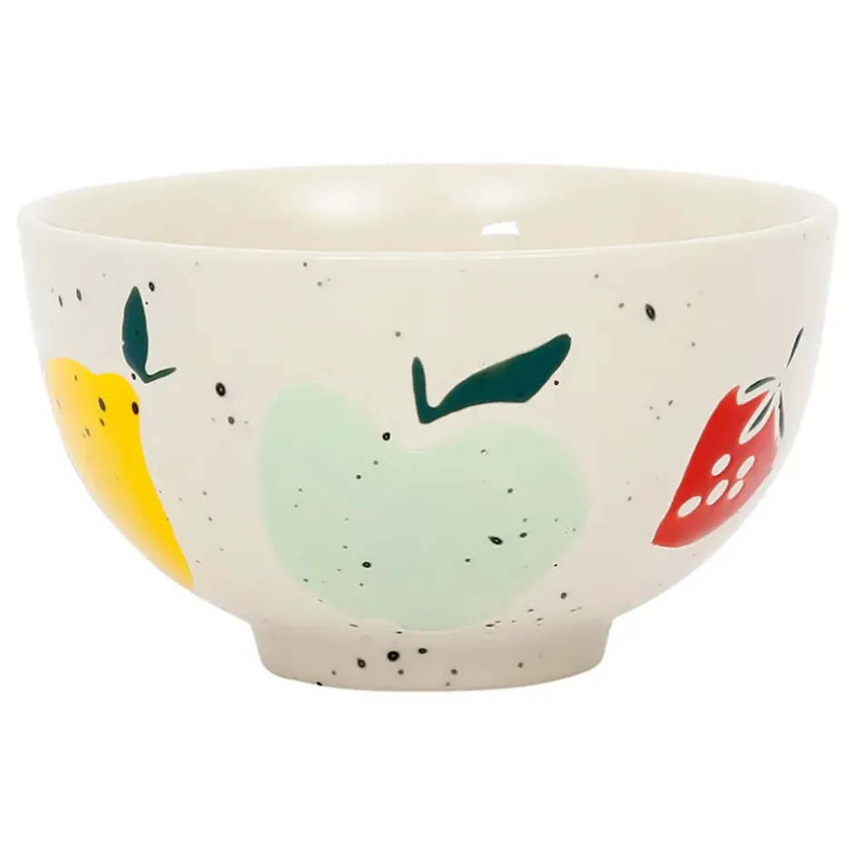 Ajoutez une touche de joie à vos repas avec ce bol en grès moucheté blanc et ses motifs de pomme multicolore de la collection Les Fruits.