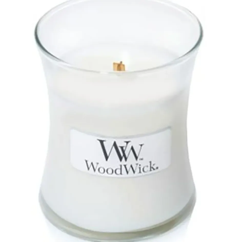Découvrez la bougie jarre thé blanc et jasmin mini de la marque Woodwick !