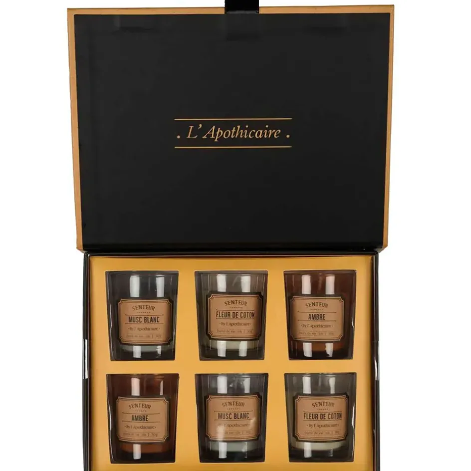 Découvrez notre coffret de 6 bougies parfumées – Apothicaire, une invitation à plonger dans un univers olfactif unique et apaisant.