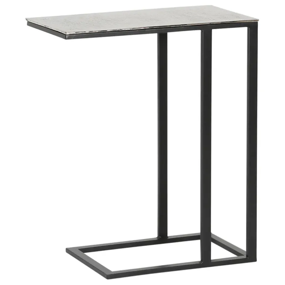 Découvrez le bout de canapé en aluminium et fer argenté Felia, mesurant 51x26xh61cm.
