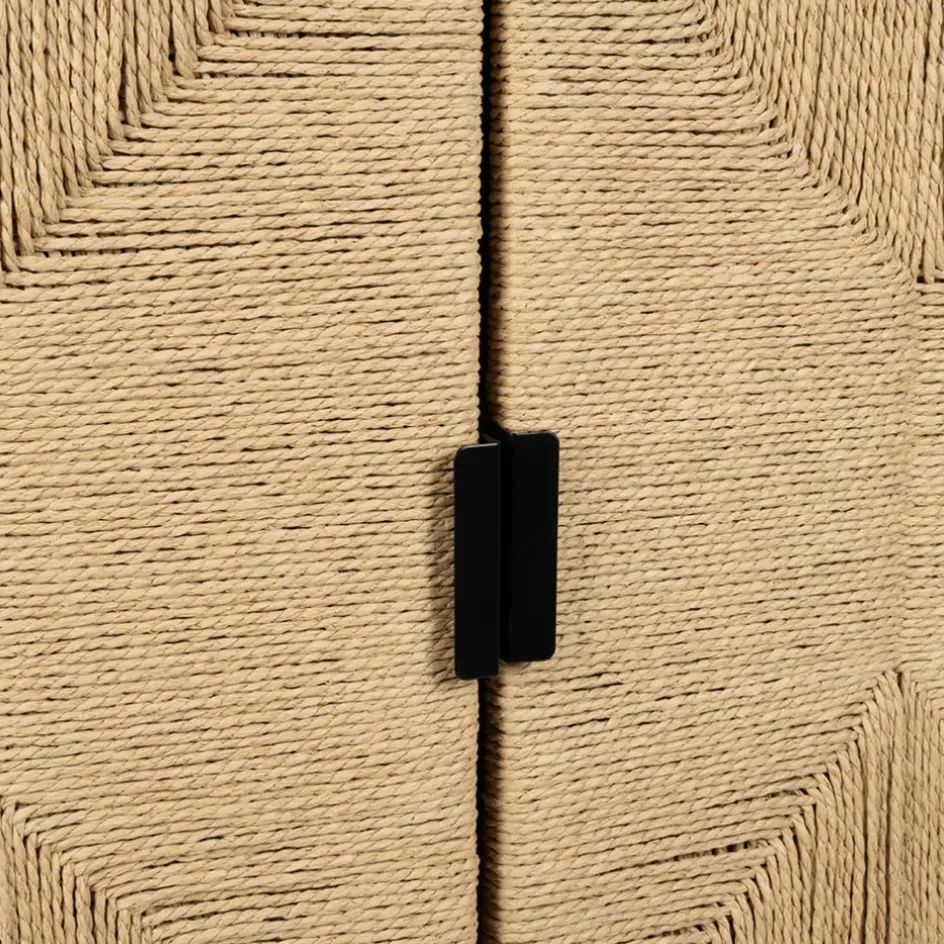 N’attendez plus pour profiter des avantages offerts par ce buffet à deux portes, qui s’impose comme un choix de premier ordre pour ceux qui recherchent tant la praticité que le style.Paulownia + jute + contreplaqué + fer