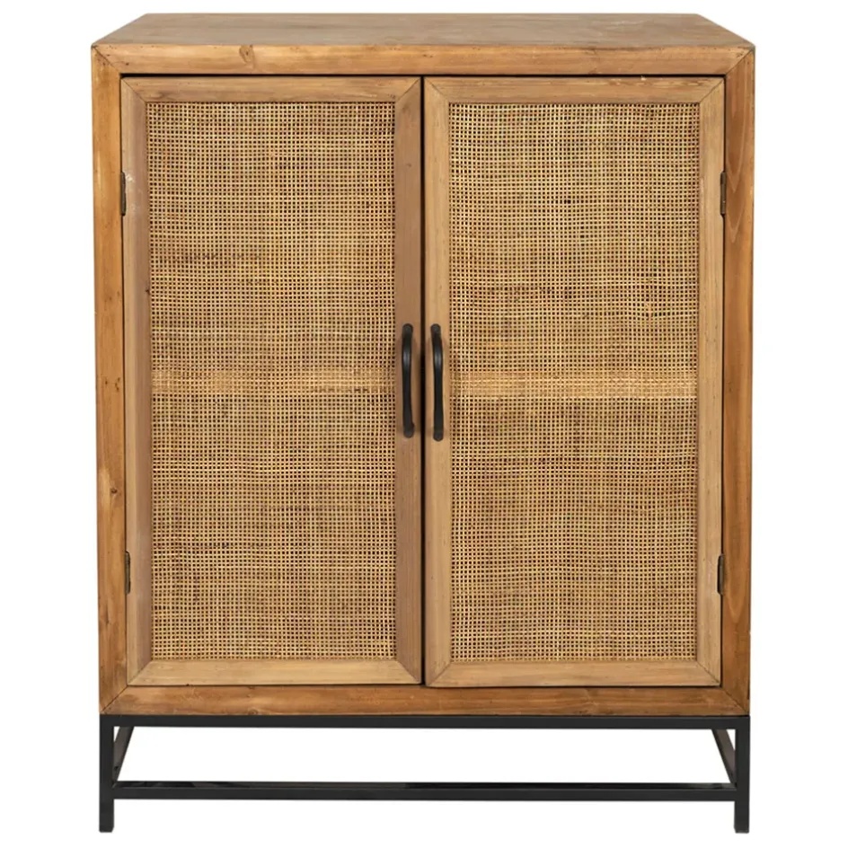 Découvrez le buffet bas en sapin et bambou naturel Tamba, mesurant 80x40xh99cm.