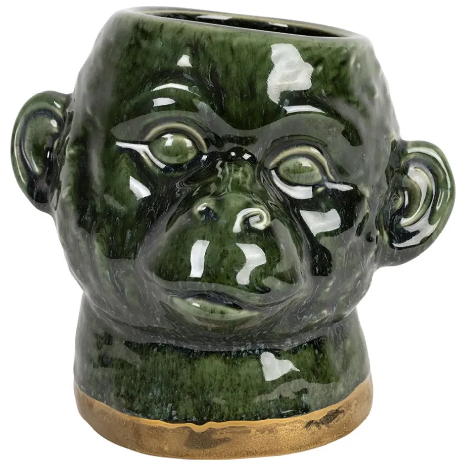 Transformez votre espace avec une touche d’originalité grâce à ce cache pot singe en grès décoratif.