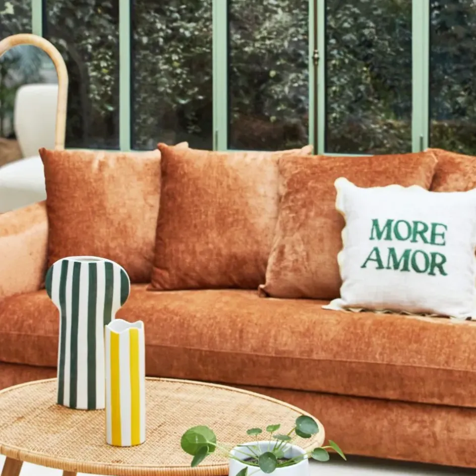 Avec son revêtement en velours texturé d’une teinte écureuil, ce canapé offre une sensation de douceur incomparable.