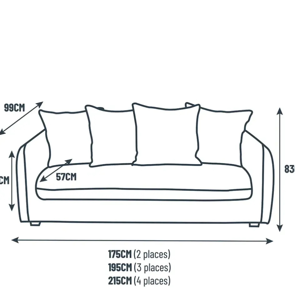 Coussin d’assise en mousse HD 28 Kg/m3 et ouate 240 gr/m2.