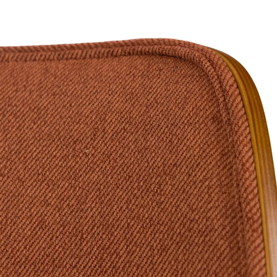 La couleur naturelle du bois contraste avec l’orange éclatant du siège, créant ainsi une harmonie visuelle plaisante.