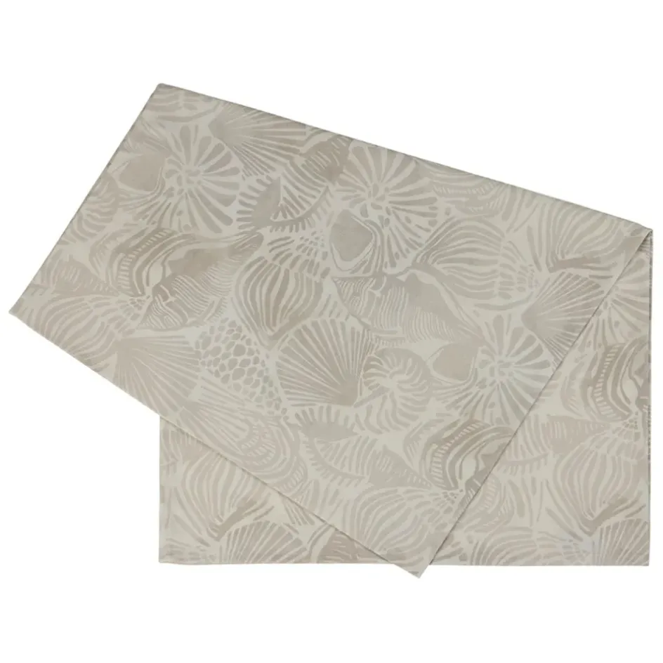 Le chemin de table en coton sable de dimensions 160x50cm, orné de motifs de coquillages, est l’accessoire parfait pour donner une touche moderne à votre table.