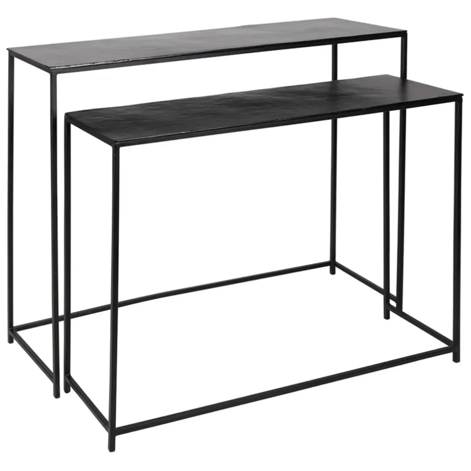 Apportez une touche de charme contemporain à votre espace avec notre ensemble de deux consoles gigognes Felia en fer doré.