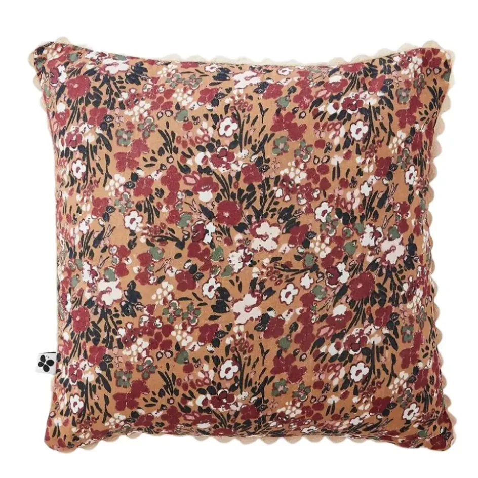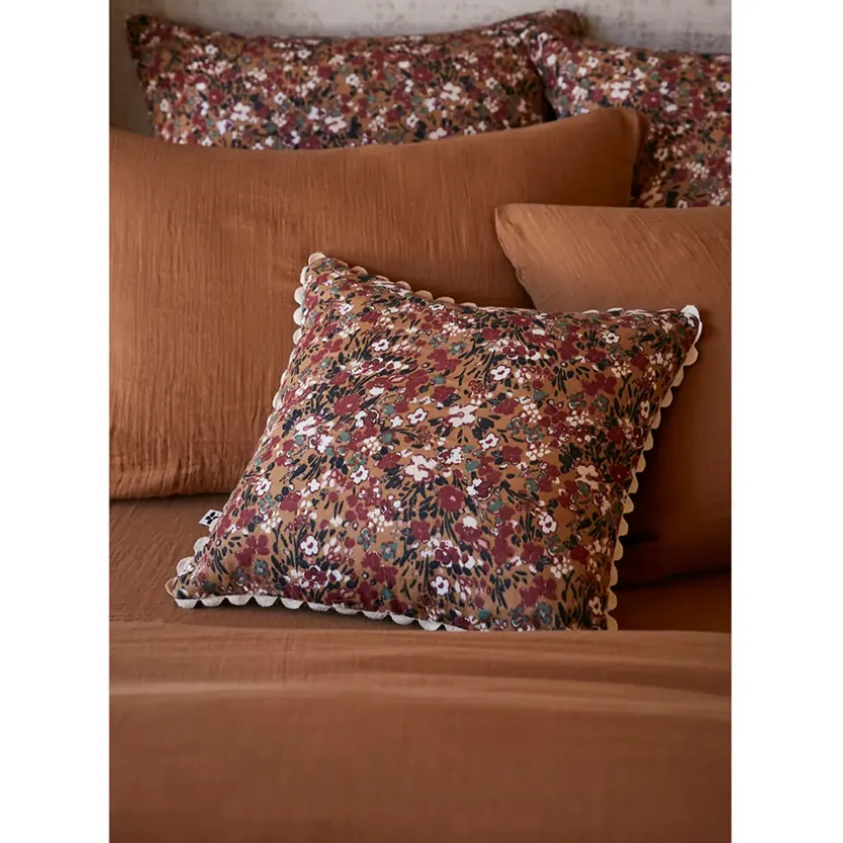 Le coussin déhoussable avec croquet en gaze de coton imprimée camel 40x40cm – Capucine est un choix idéal pour ajouter une touche de style à votre intérieur.