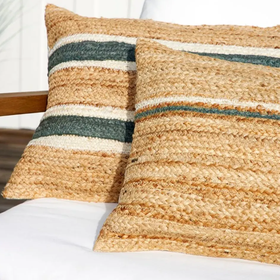 Découvrez notre magnifique coussin en jute sauge de 80x38cm – Sumatra, un véritable bijou pour votre intérieur.