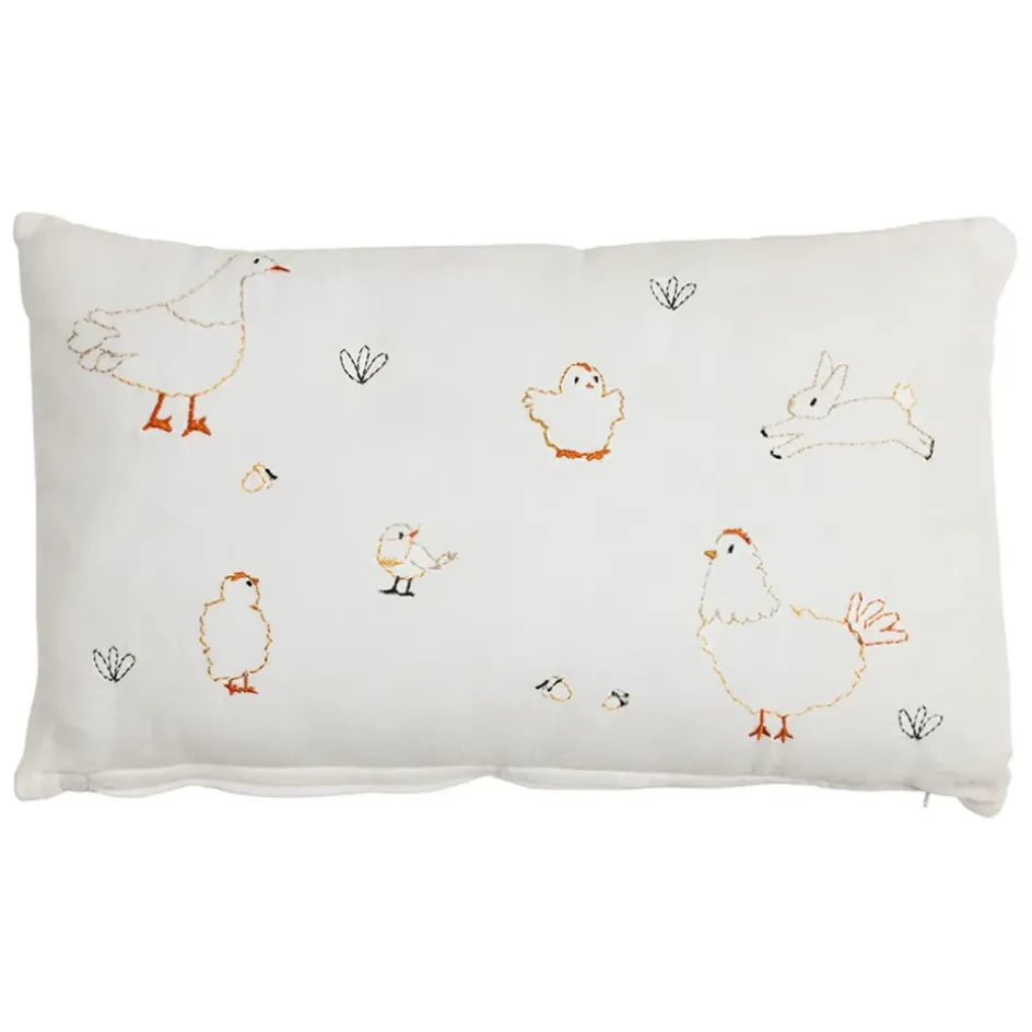 Décorez votre maison avec une touche de charme rustique en ajoutant cette housse de coussin en gaze de coton écru et multicolore 50x30cm de la collection « A la ferme ».