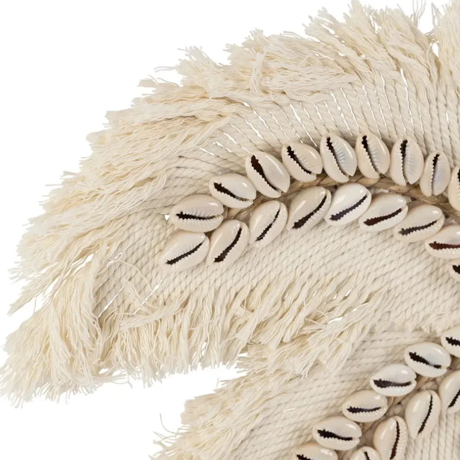 Mesurant 31x31cm, cette pièce unique est fabriquée à partir de coquillages de cauri, offrant ainsi un design exquis et original.