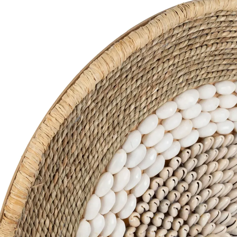Le Cauri, symbole de prospérité et de protection dans de nombreuses cultures, ajoute une signification spirituelle à votre espace de vie.Coquillage + contreplaqué + jonc de mer