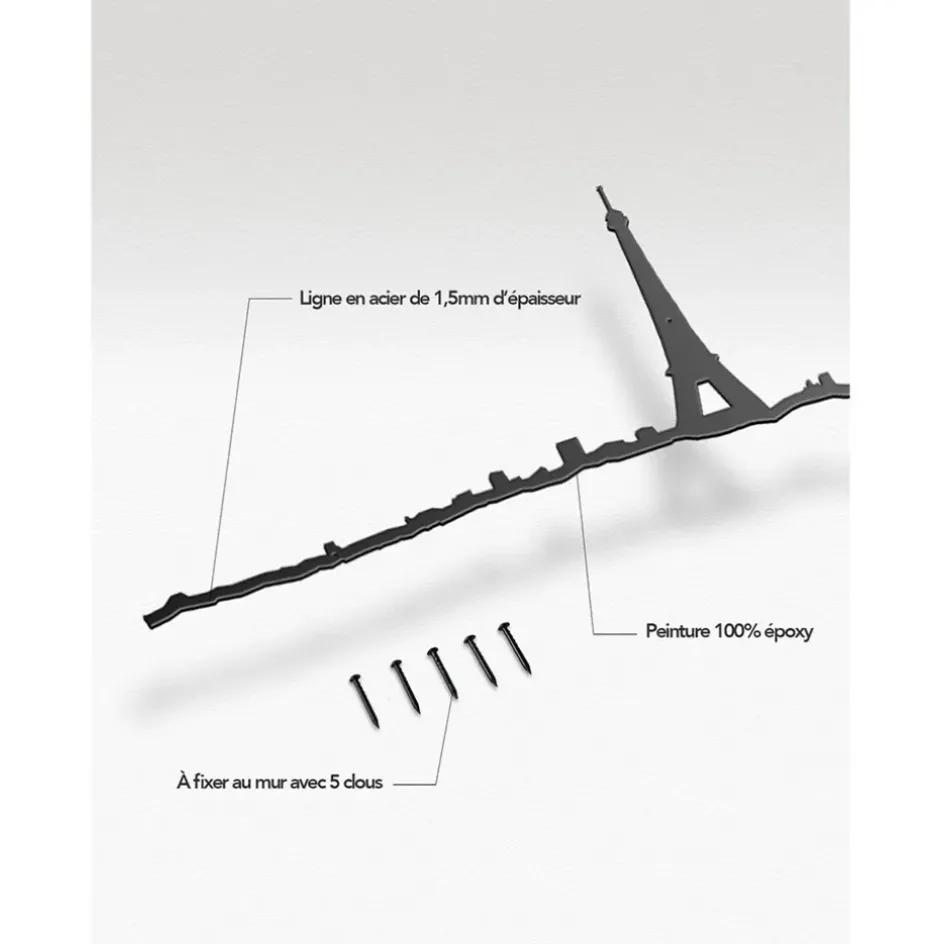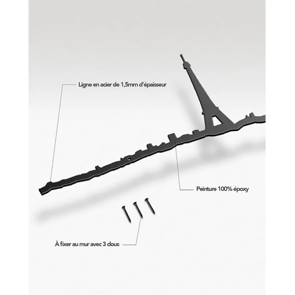 Découvrez une touche artistique unique pour votre intérieur avec notre décoration murale représentant la ligne de l’horizon de Paris, mesurant 50 cm.