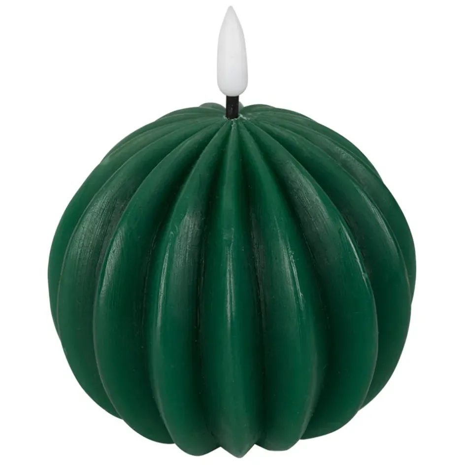 Apportez une touche festive et naturelle à votre décoration avec cette bougie LED en forme de boule de couleur vert sapin.