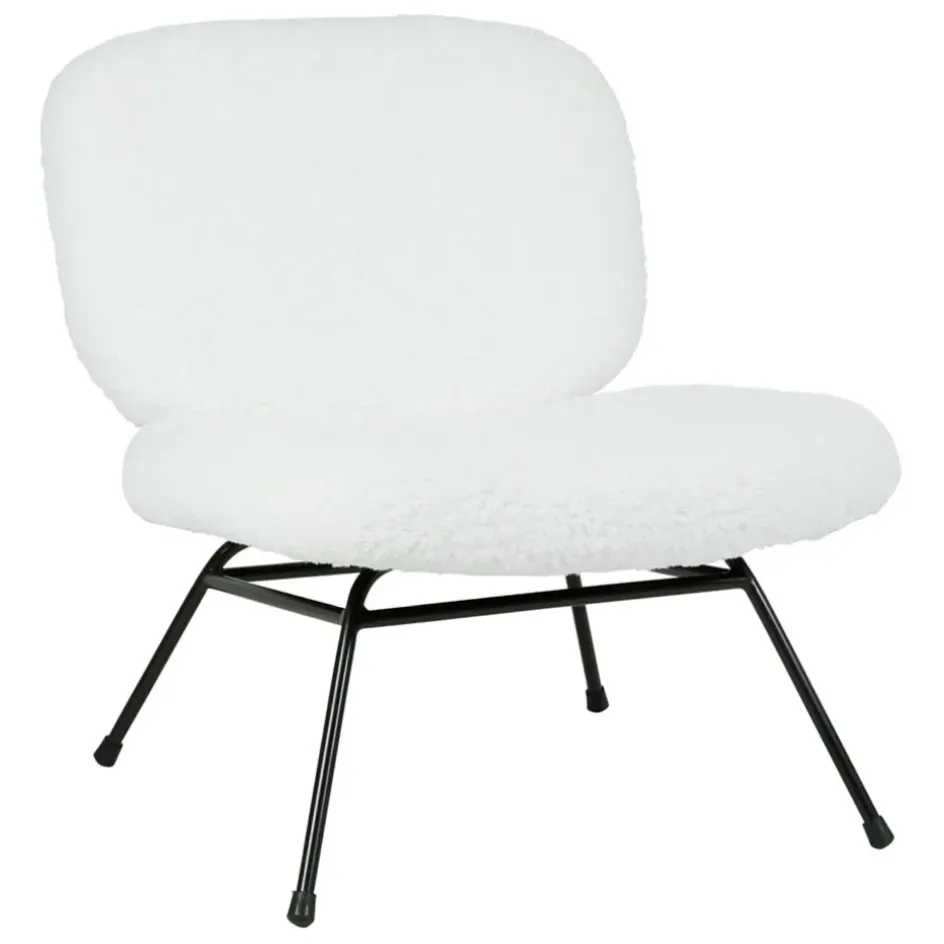 Plongez dans un cocon de douceur avec le fauteuil Ethior en tissu bouclette blanc.