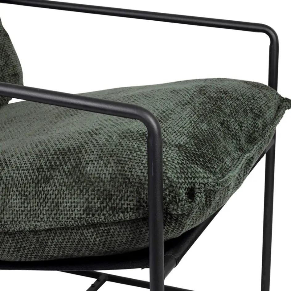 Ce fauteuil combine la robustesse d’une structure en fer avec la chaleur et le charme d’un tissu émeraude.