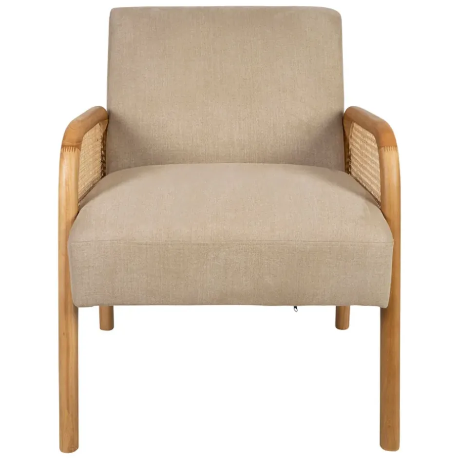 Découvrez le confort et le style avec ce fauteuil en tissu et hévéa beige, parfait pour compléter votre intérieur de manière accueillante et chaleureuse.
