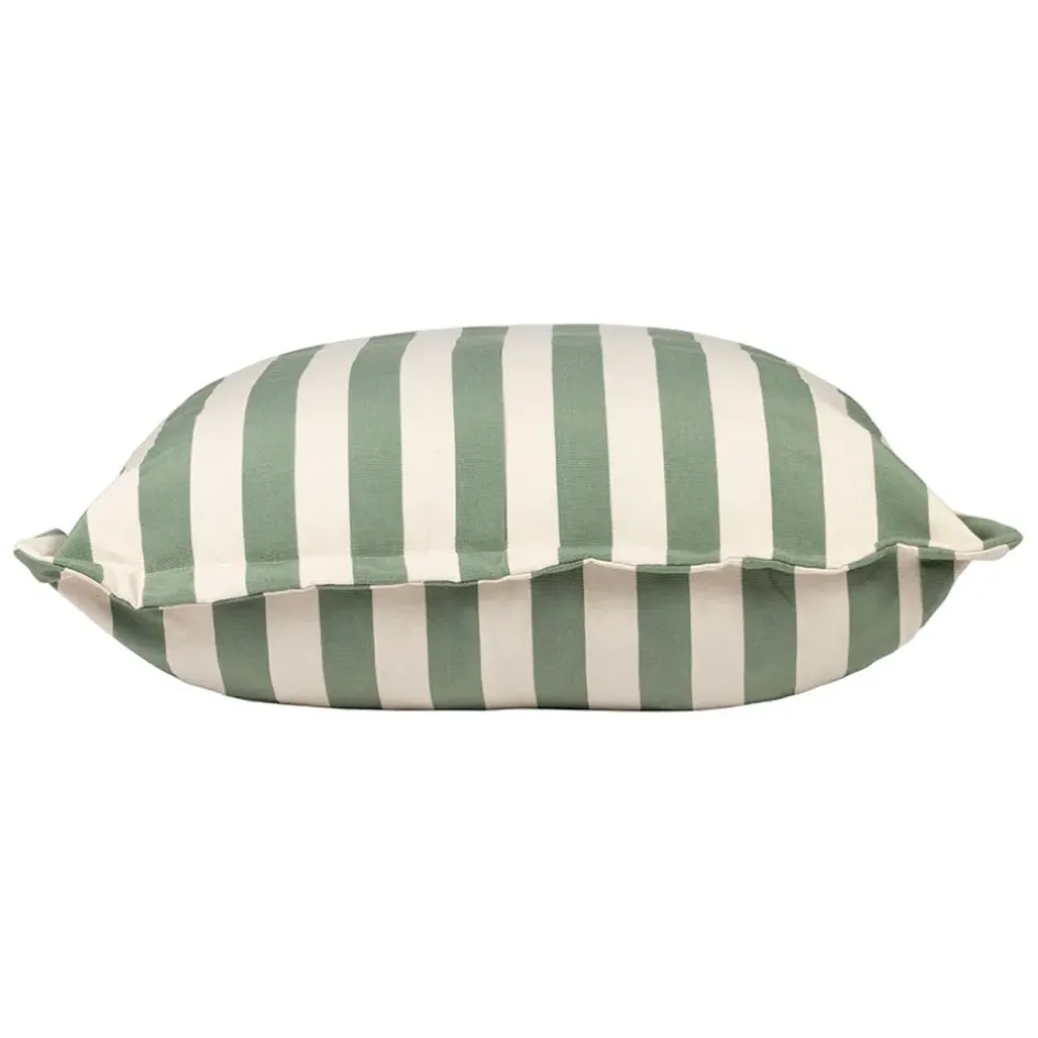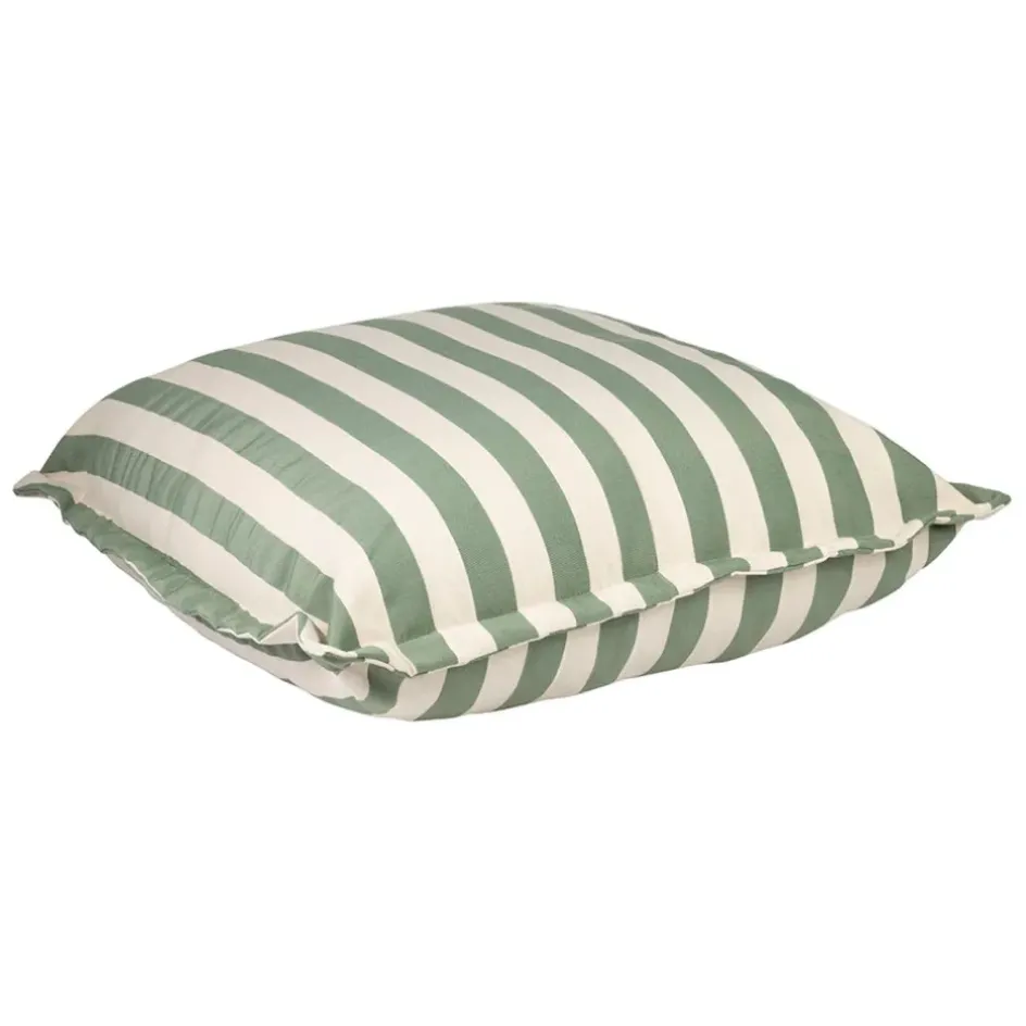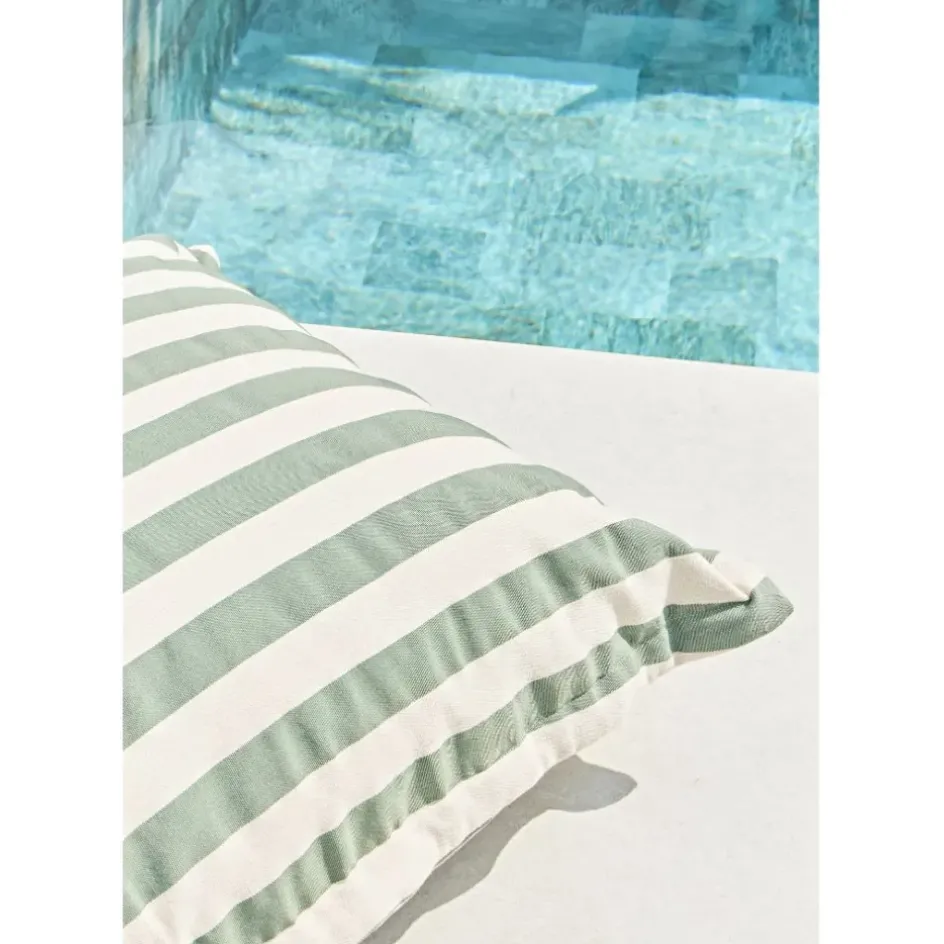 Offrez-vous une bulle de confort avec ce pouf d’extérieur aux rayures sauge et écru, parfait pour compléter un espace détente en plein air.
