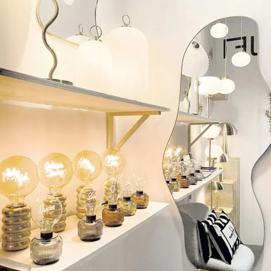 Lampe décorative à piles. En verre transparente DREAM en led et pied de lampe couleur ambre . Piles non incluses.Verre