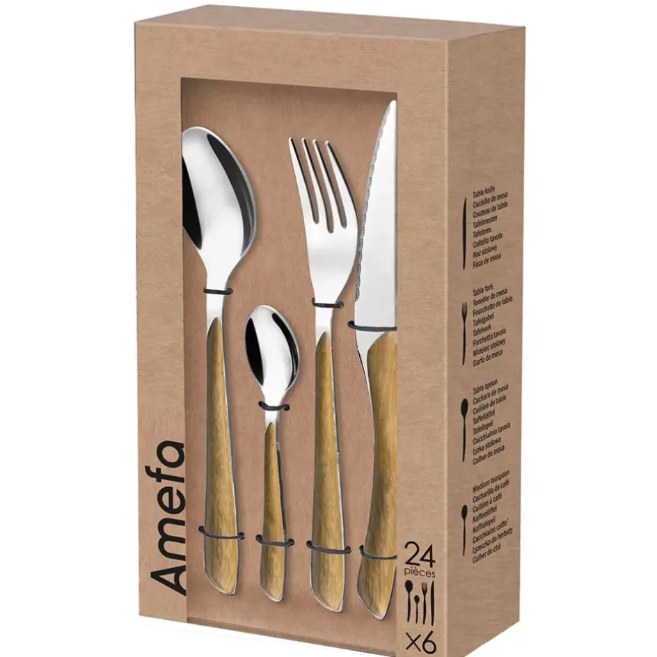 Découvrez notre superbe ménagère 24 pièces en acier et effet bois – Eclat !