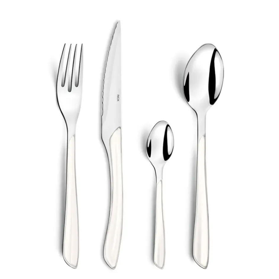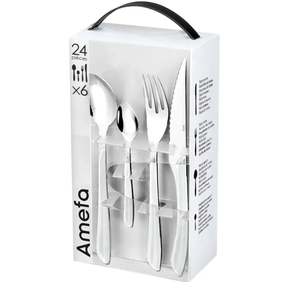 Ménagère en acier blanc de 24 pièces, apportant une touche d’éclat à votre table.ACIER 18/0
