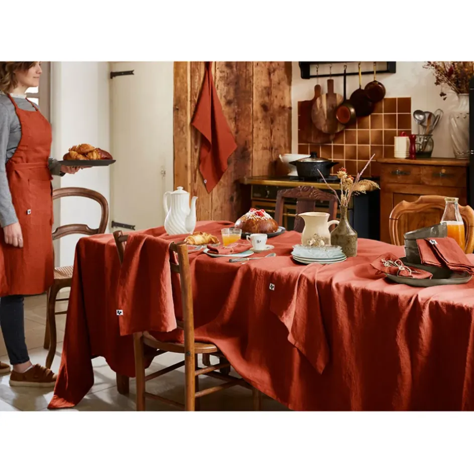 La nappe rectangle en lin lavé paprika 170x250cm de Soline est l’accessoire parfait pour sublimer votre table avec élégance et raffinement.
