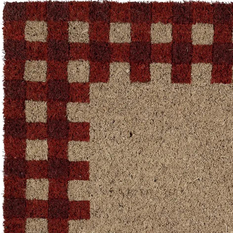 Paillasson damier naturel et rouge 73x43cm en coco, idéal pour apporter une touche rustique et champêtre à votre entrée.Pvc + coco / Pvc + coir