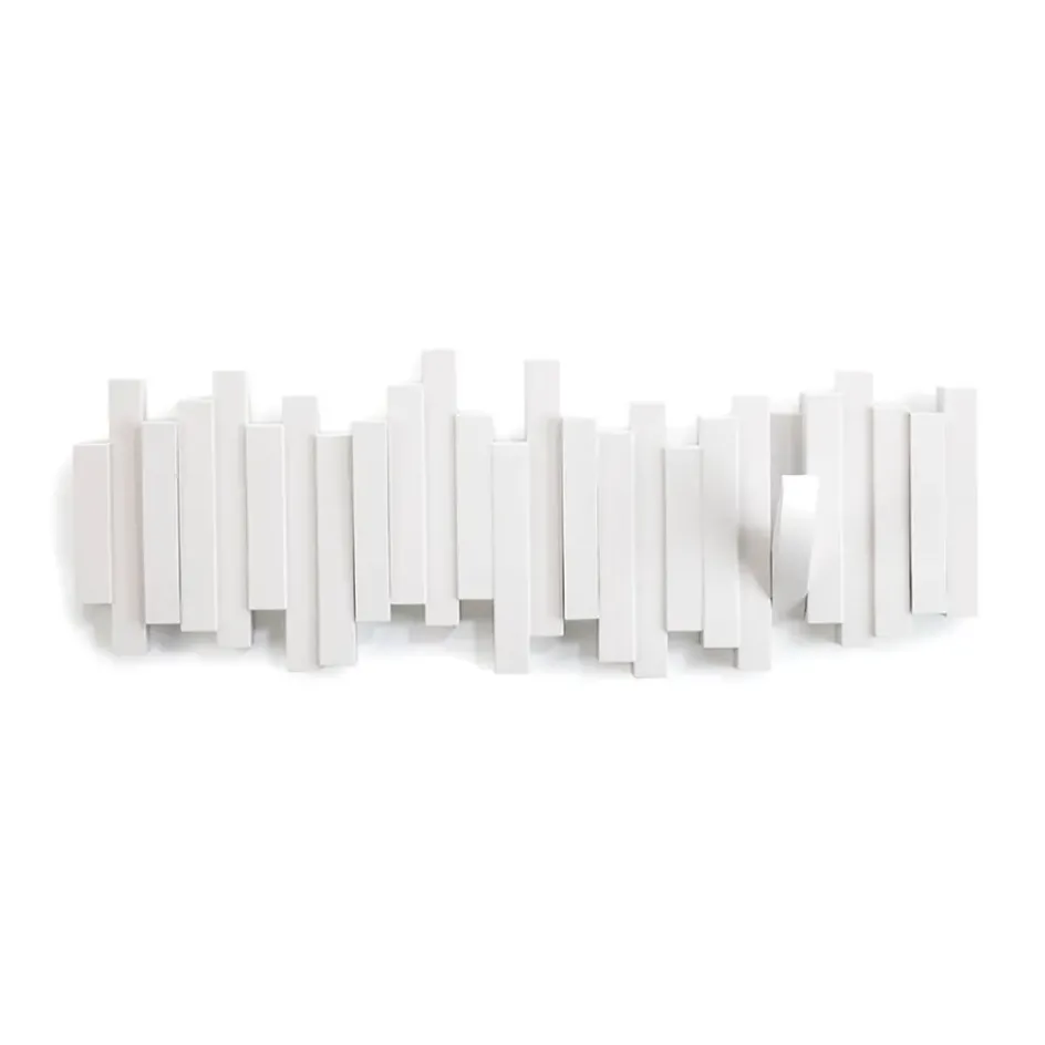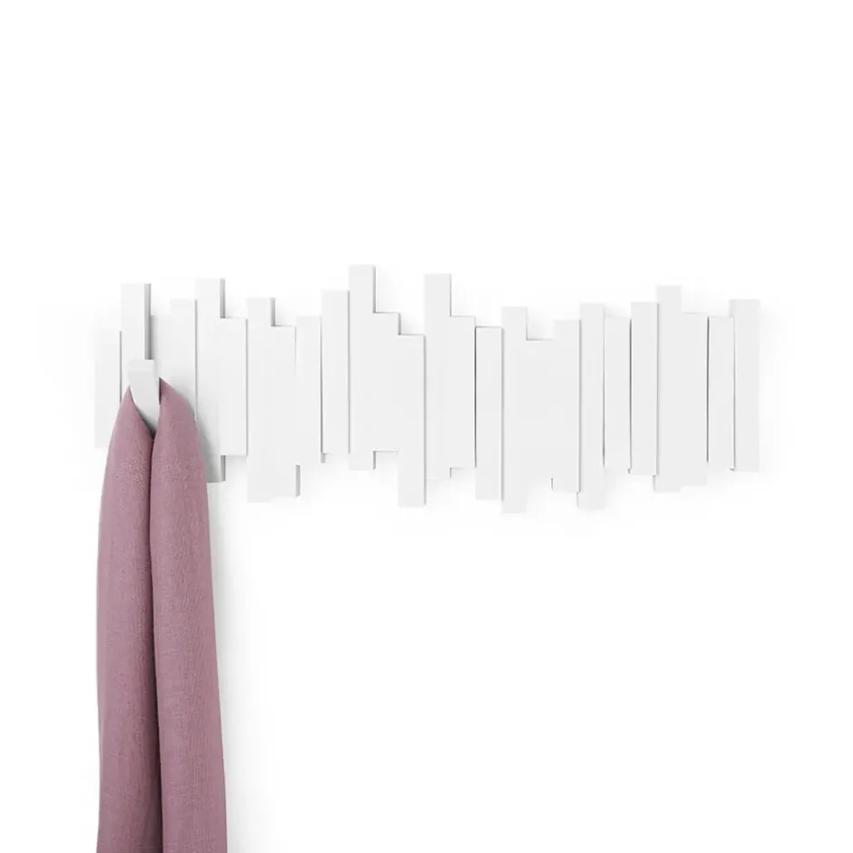 La patère murale blanche avec 5 crochets rabattables, idéale pour organiser vos affaires avec style.Fonte
