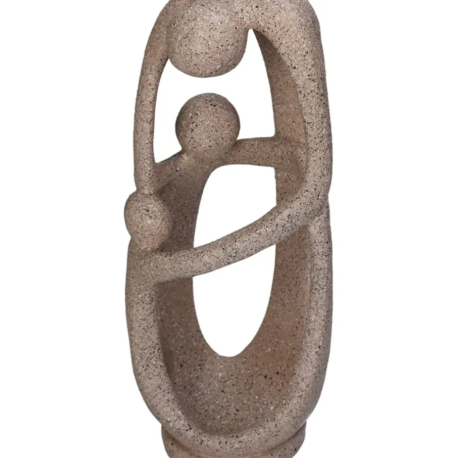 Cette sculpture en polyrésine beige incarne un moment de tendresse figé dans la matière.