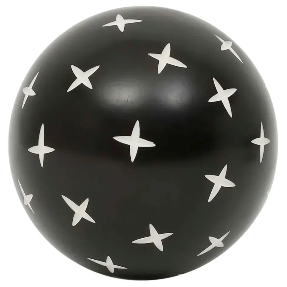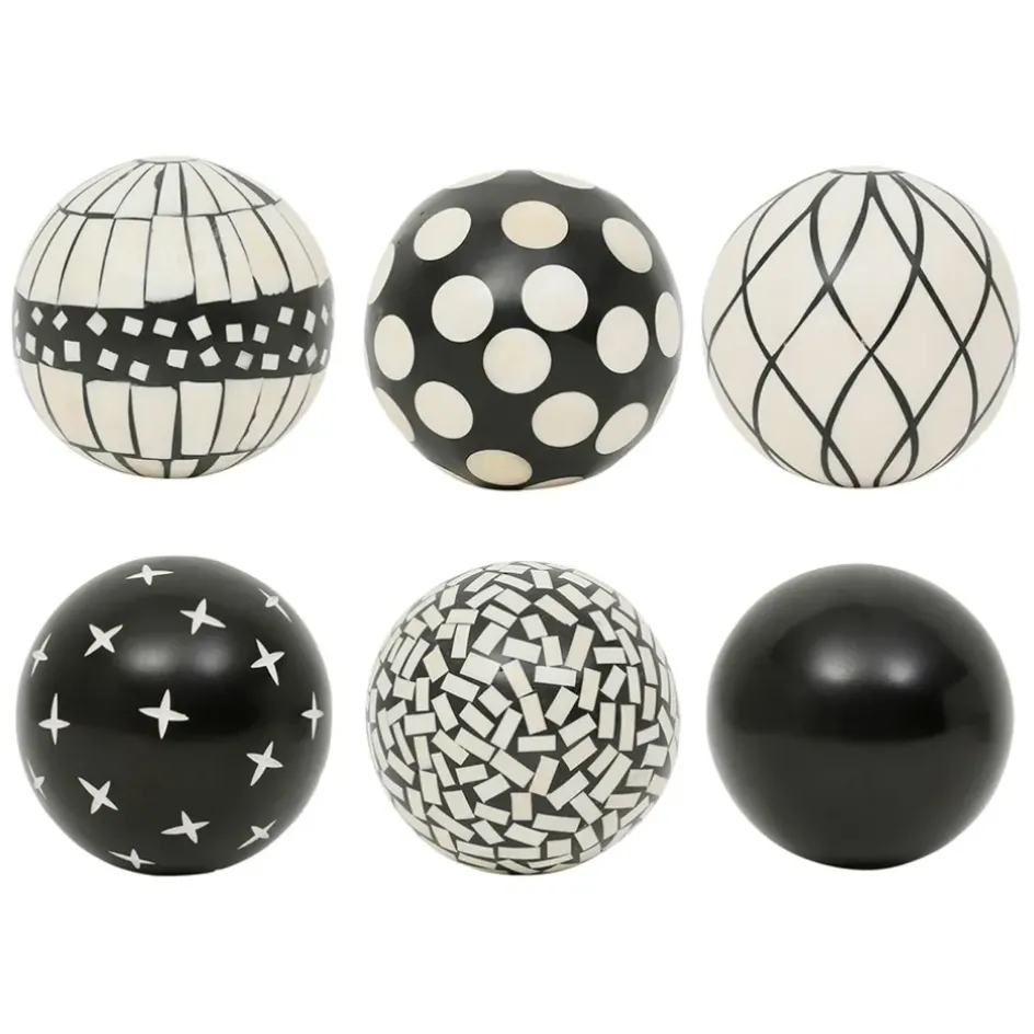 Avec leur diamètre de 10 cm, ces boules noires et blanches arborent des motifs géométriques qui évoquent les influences ethniques et contemporaines.