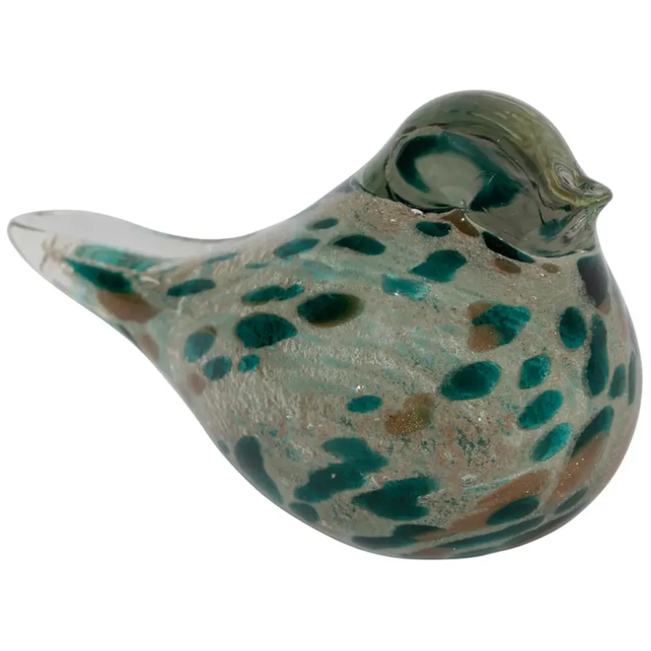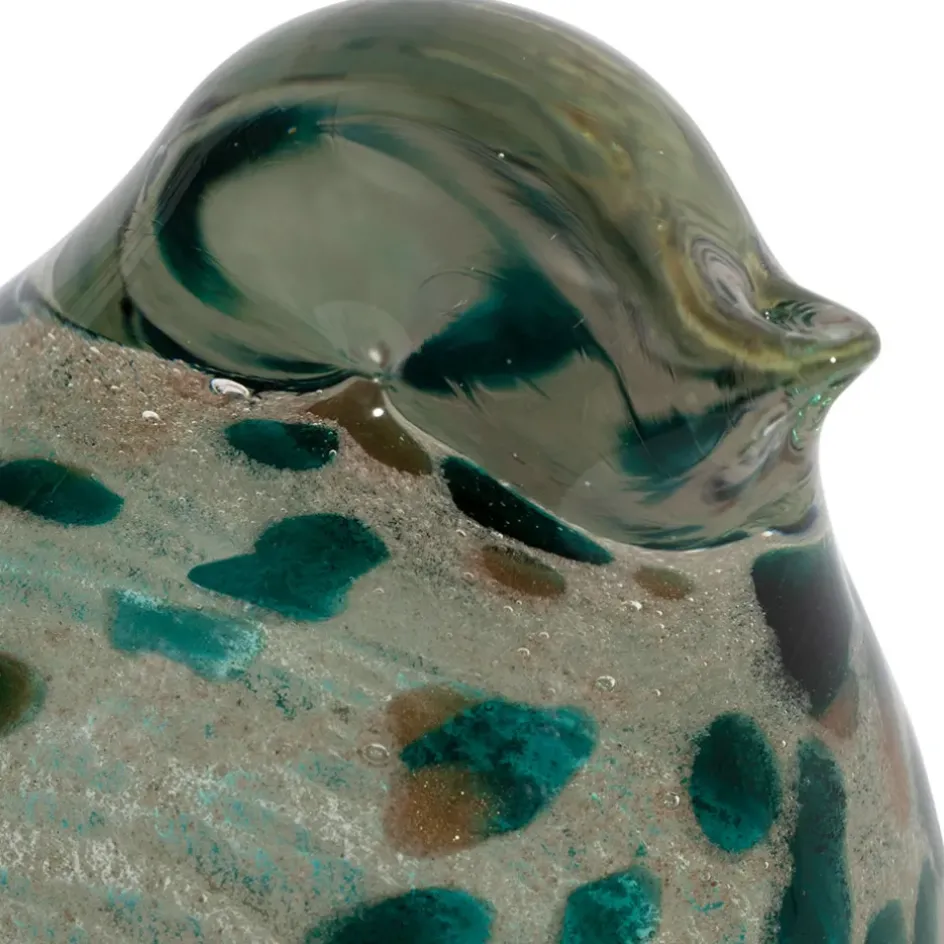 Presse papier en verre émeraude et doré, décoré avec élégance par un motif de serin. Parfait pour ajouter une touche de sophistication à votre espace de travail ou comme objet de décoration.Verre.