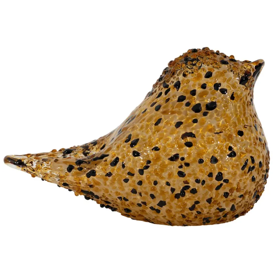 Ajoutez une touche de charme aviaire à votre espace de travail avec cet exceptionnel presse-papier en verre, conçu en forme de moineau dans des tons chauds d’ambre et de noir.