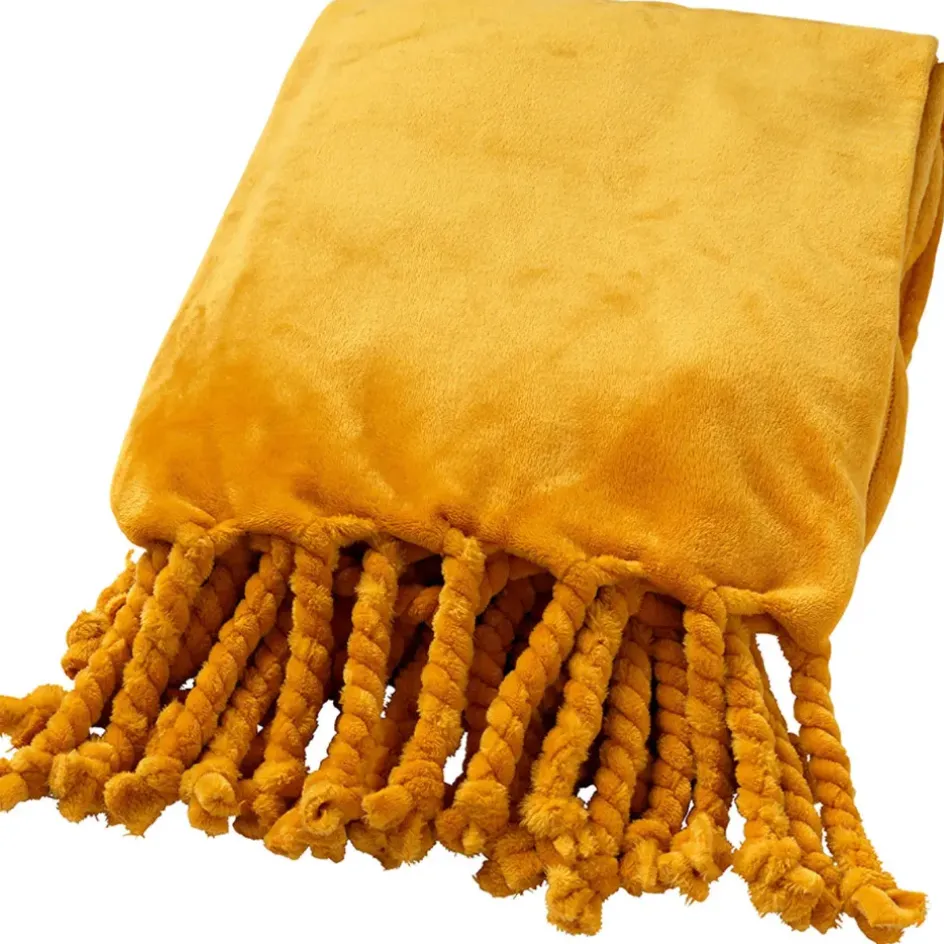 Ce jeté de couleur « golden glow moutarde » illumine n’importe quelle pièce tout en ajoutant une nuance moderne et accueillante.