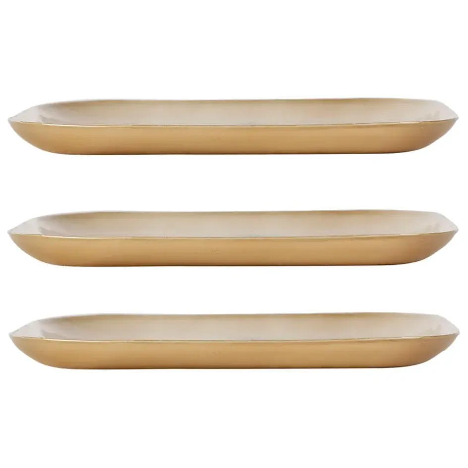 Le lot de 3 plateaux en fer bleu et doré, nommé « Corfou », est un ensemble idéal pour être utilisé comme vide-poche.
