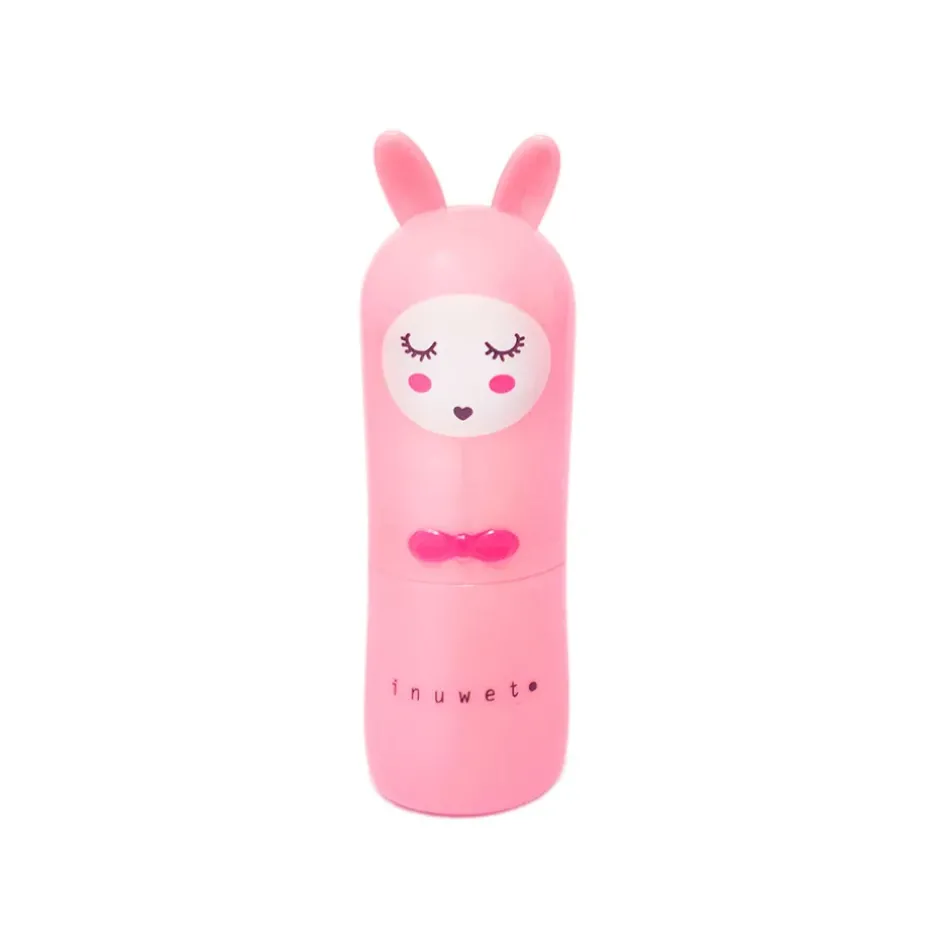 Baume à lèvres rose pâle parfumé à la fraise.