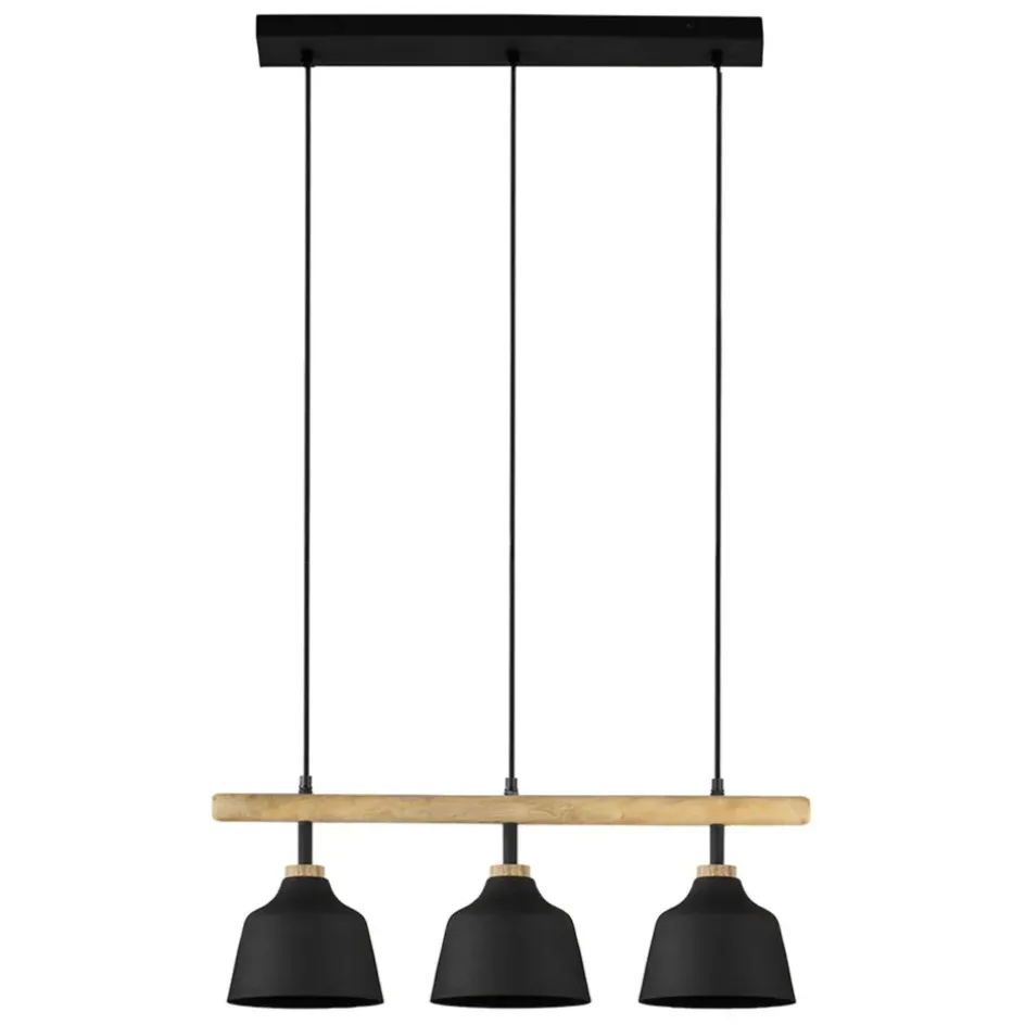 Suspension en fer et manguier noir mat, composée de 3 feux, d’une longueur de 121 cm – ferese.METAL ET VERRE