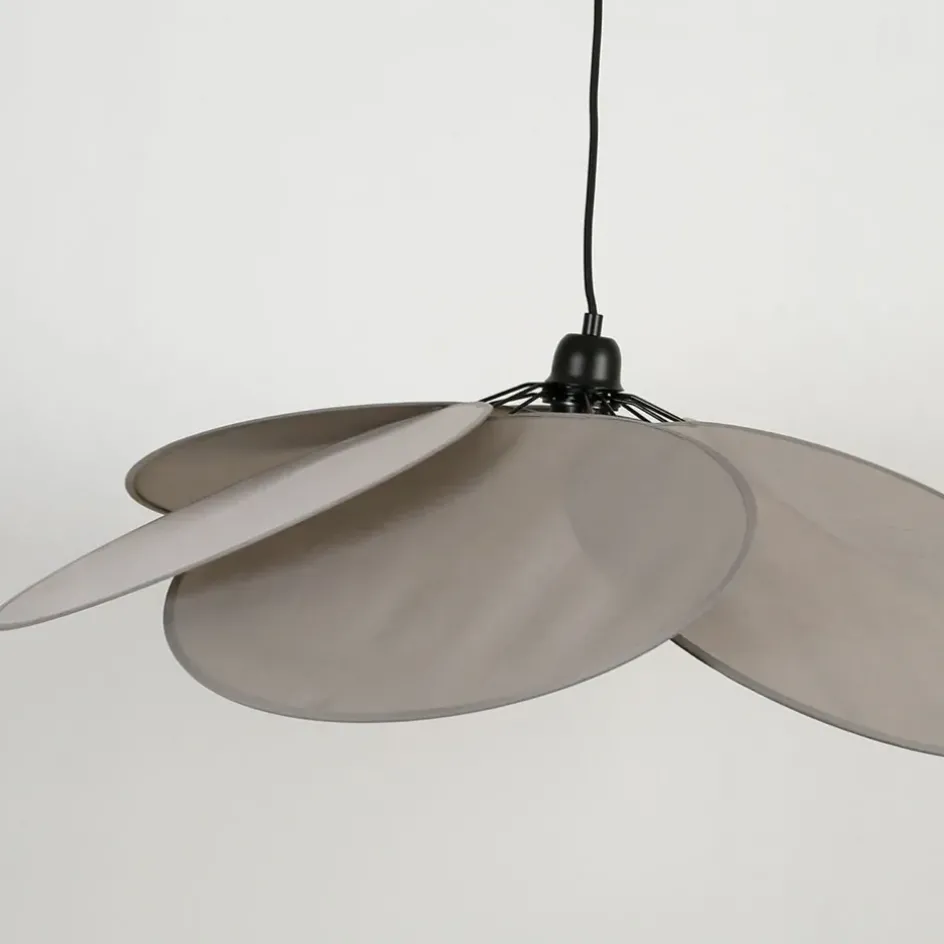 Suspension composée d’un abat-jour en coton et d’un système électrique (câble + douille + rosace) en métal noir. Compatible avec culot E27, puissance 40W MaxFer + lin / Iron + linen