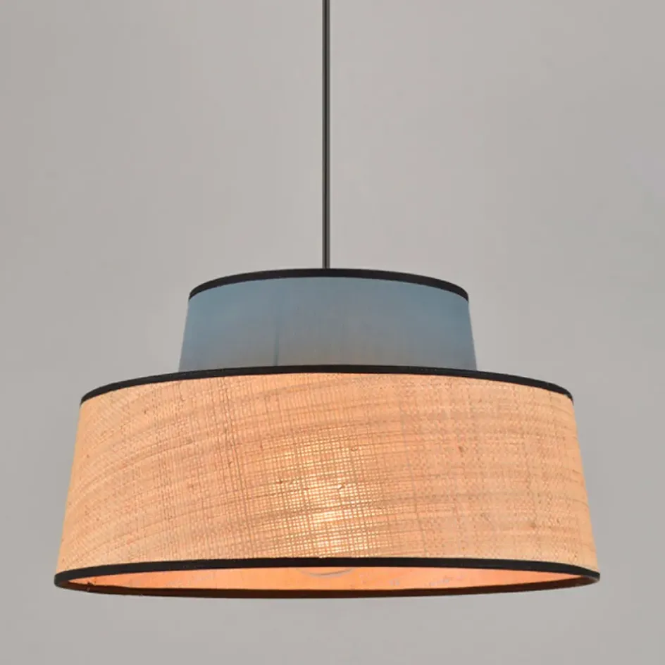 Suspension composée de 2 coniques : 1 petit en coton et le plus grand en matière naturelle raphia.