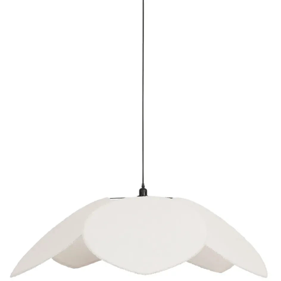 Fabriquée avec soin, cette suspension en tissu de qualité supérieure offre une finition écru subtile et raffinée.