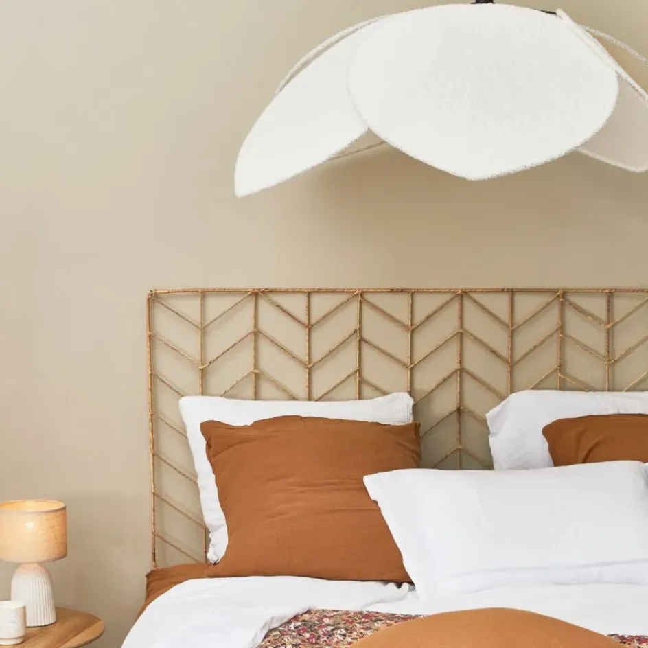 Découvrez la suspension en tissu et frêne d110x39cm écru – Bouclette, un luminaire qui allie design et praticité.