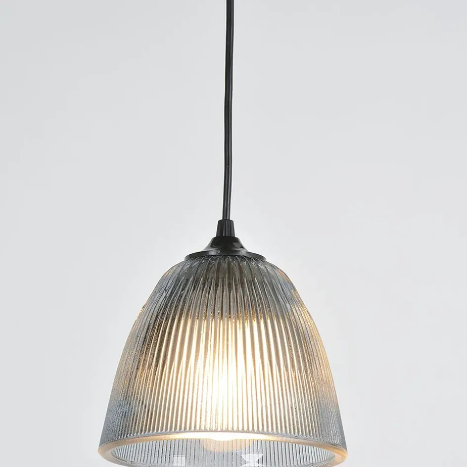 Venez découvrir notre Suspension en verre strié fumé de la marque Corep à découvrir sur Fabrique de StylesCéramique + rotin