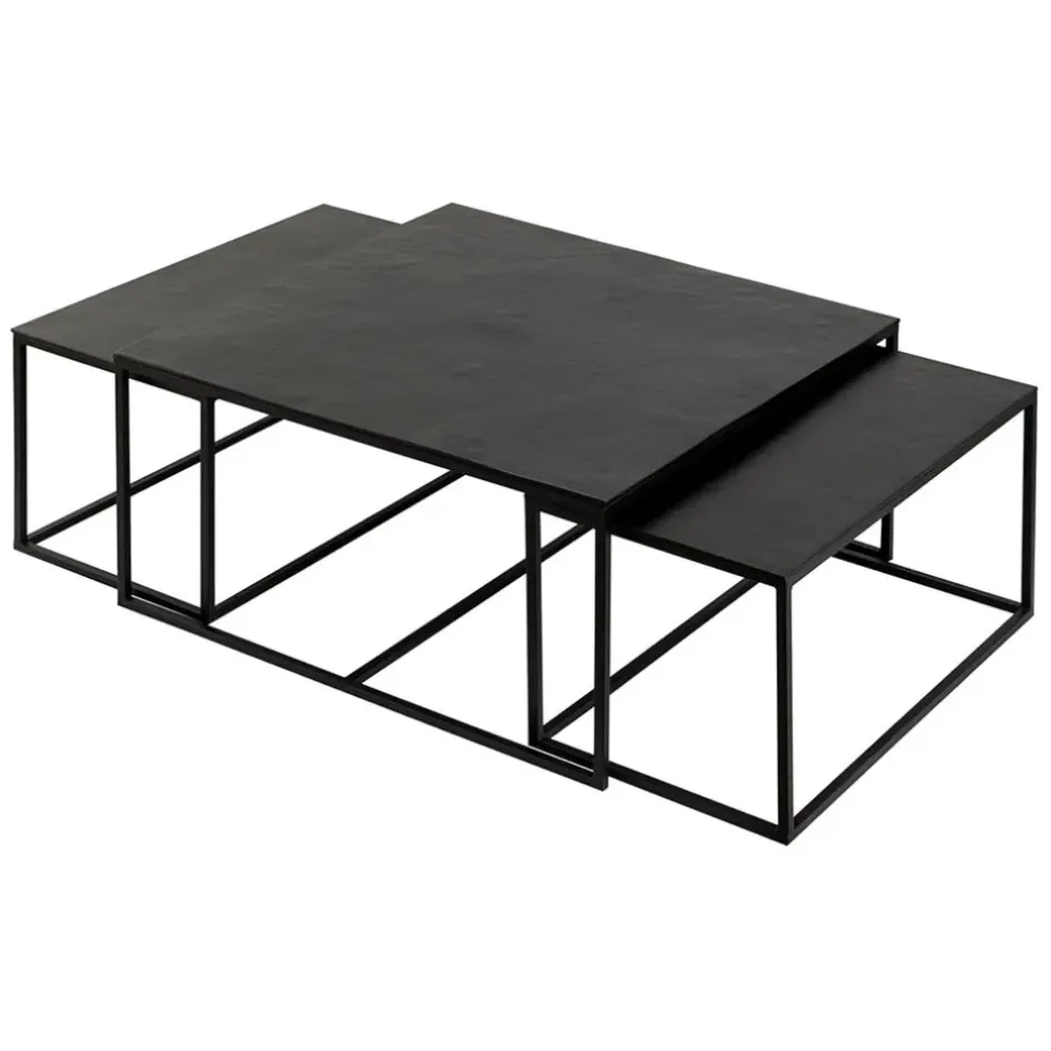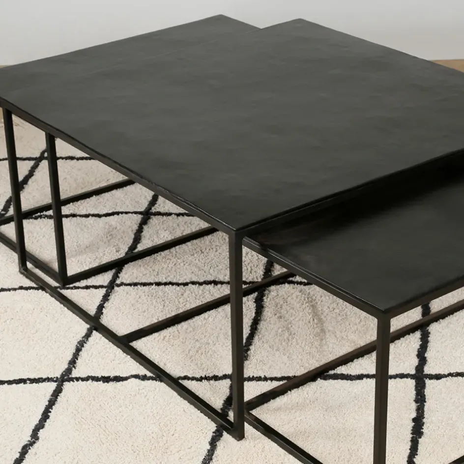 Apportez une touche moderne à votre salon avec la table basse gigogne rectangulaire (lot de 3) en aluminium et fer noir Felia.