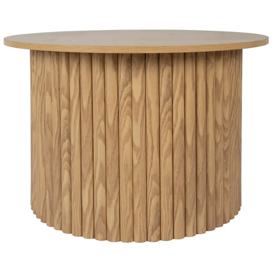 Placez la table basse ronde en panneau de bois naturel Saori au cœur de votre salon, pour un intérieur contemporain et convivial.