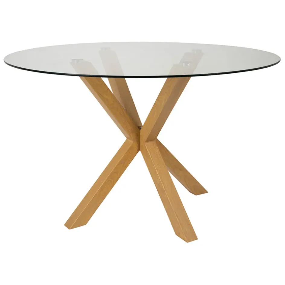 Transformez votre espace de vie avec cette table de salle à manger ronde alliant verre trempé et métal naturel de 119 cm de diamètre.