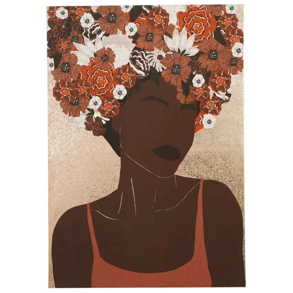 Venez découvrir notre Tableau turban fleuri terra 70x100cm toile et mdf de la marque SEMA Design à découvrir sur Fabrique de Styles.CRÉATION UNIQUE